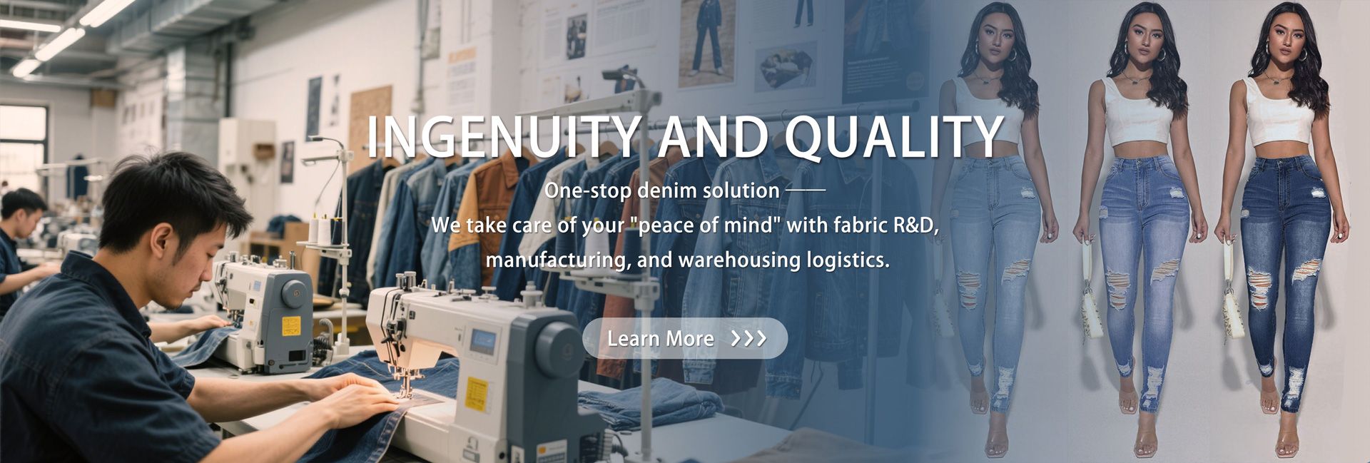 Jeans factory 100+ workers Jeans factory have a 20-person team crafts denim prototypes
